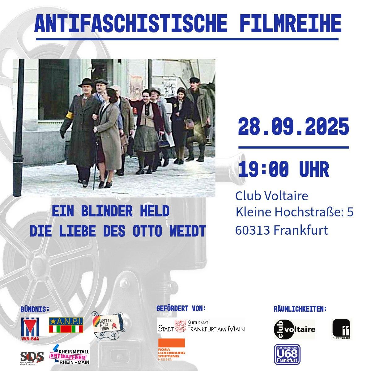 Ein blinder Held 28.9.25 sharepic Veröffentlicht 21. September 2025 am 1200 × 1200 in ANTIFASCHISTISCHE FILMREIHE FRANKFURT